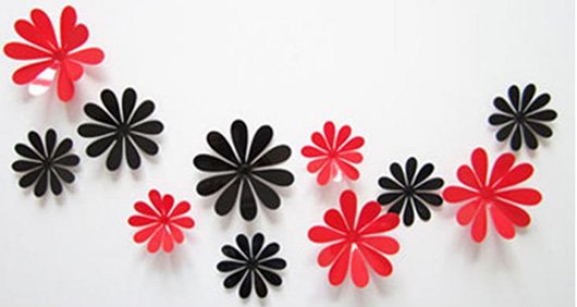 Lakierowane kwiatki 3D w kolorze czerwonym, do dekorowania Twojego wnętrza z przygotowaniem do montażu. Z ich pomocą stworzysz niepowtarzalne i wyjątkowe wnętrze. Świetlista błyszcząca powierzchnia, która odbija elementy otoczenia, dając ciekawe efekty wizualne we wnętrzach.